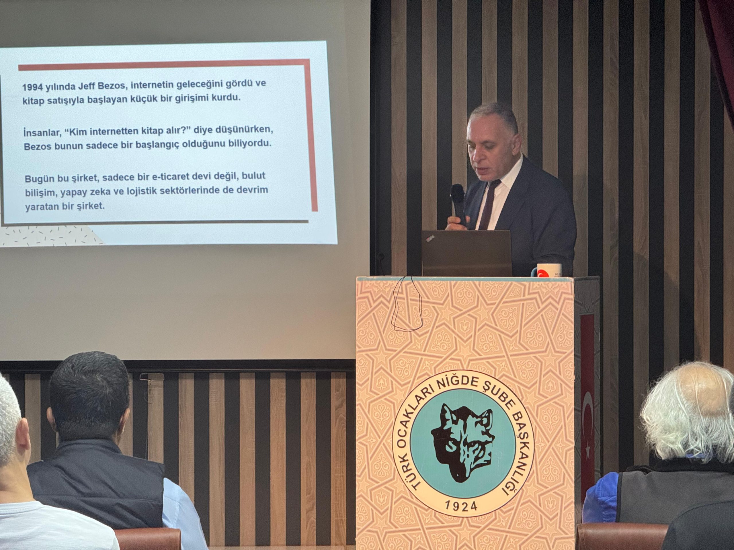 16 Mayıs Cuma Günü Türk Ocakları Niğde Şubesi M. Yılmaz Uzun Salonu’nda düzenlenen etkinlikte bu haftaki konuşmacı Dr. Öğr. Üyesi Rifat Battaloğlu oldu. Konuşmalarına girişimci, azimle çalışan insanlardan örneklerle başlayan Battaloğlu, dünyanın farklı bölgelerinde başarı hikayelerinin kararlılıkla devam edilerek elde edildiğini belirtti. Başarıya ulaşan girişimcilerin hikayelerinde azmin kararlılığın yanında cesaret olduğunu söyleyen Battaloğlu girişimcilerin işlerini büyütmek için de risk almaktan kaçınmadığını ifade etti. Dünyaca ünlü markaların oluşmasının ardında yaşanılan aksilikler ve olumsuzluklara, bunların aşılma süreçlerine vurgu yaptı.
