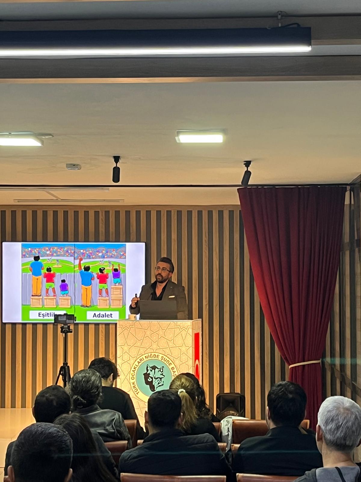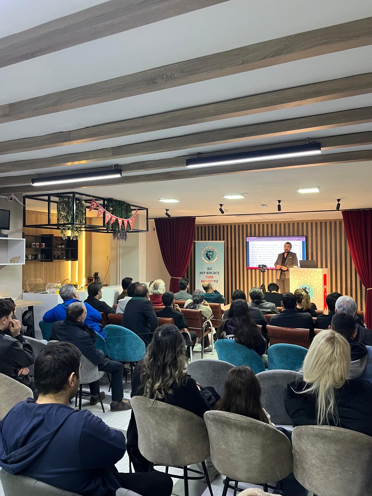 12 Aralık Cuma günü Türk Ocakları Niğde Şubesi M. Yılmaz Uzun Salonu’nda düzenlenen ocakbaşı sohbetinde bu haftaki konuşmacı, Doç. Dr. Emin Salihi oldu. Doç. Dr. Emin Salihi, “Söylemler İle Gerçekler Arasında Türk Dünyası Tartışmaları” başlıklı konuşmasında, Türk Dünyası kavramını, resmi söylemler ve sahada karşılaşılan gerçekler arasındaki dengeyi irdeleyerek ele aldı. Konuşmasına, tarihsel olaylara ve güncel gelişmelere bakış açısının önemine değinerek başlayan Salihi, özellikle hamasi söylemlerin ötesine geçilerek, Türk Dünyası’nın mevcut durumunun gerçekçi bir zeminde değerlendirilmesi gerektiğini vurguladı.
